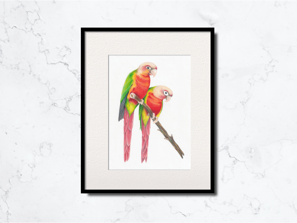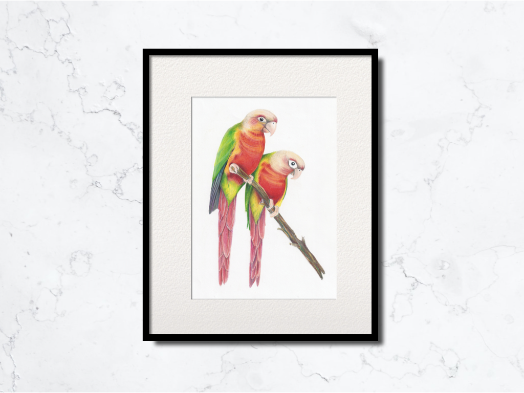 | Pineapple Green Cheeked Conures (7″x9.8″) – VENDIDO/SOLD | Q120 | USD15 |