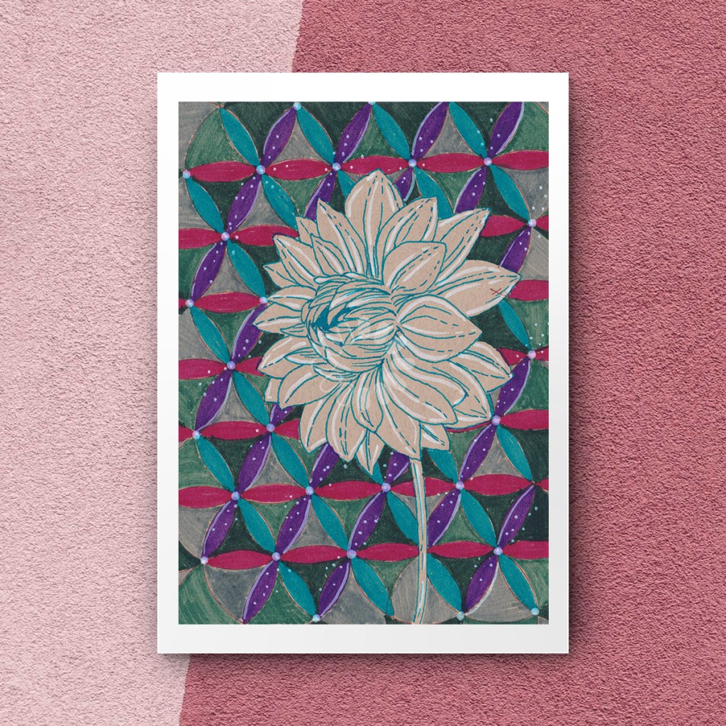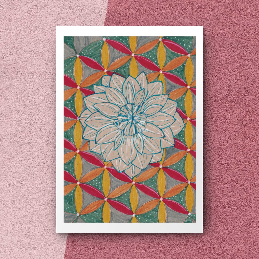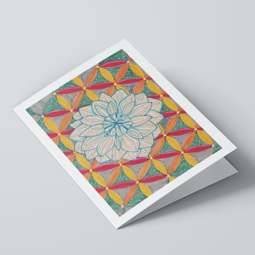 La geometría sacrada es una base matemática que explica la perfección de la creación. Hipnotiza tus sentidos con esta colección hecha a mano, disponible en postales impresas 4×6 pulgadas y tarjetas A5.