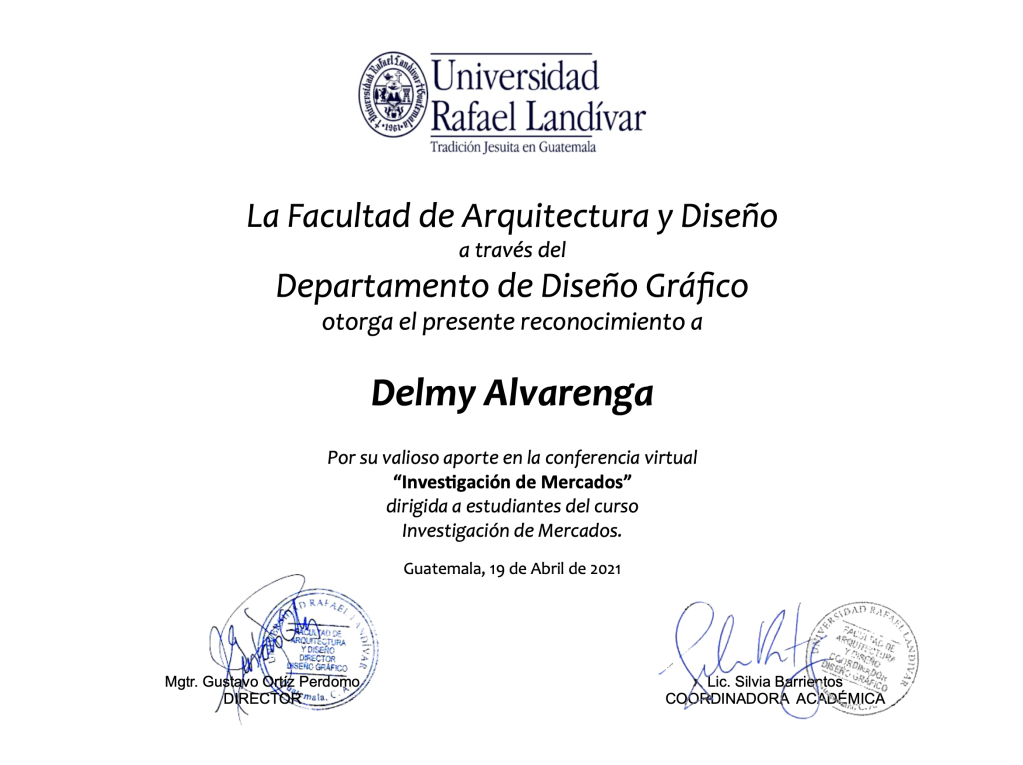 El pasado 19 de abril de 2021, tuve el honor de impartir una conferencia virtual para estudiantes de la Universidad Rafael Landívar en la Ciudad de Guatemala. En este evento, exploramos a fondo el fascinante campo de la investigación de mercados y su impacto crucial en las estrategias comerciales.