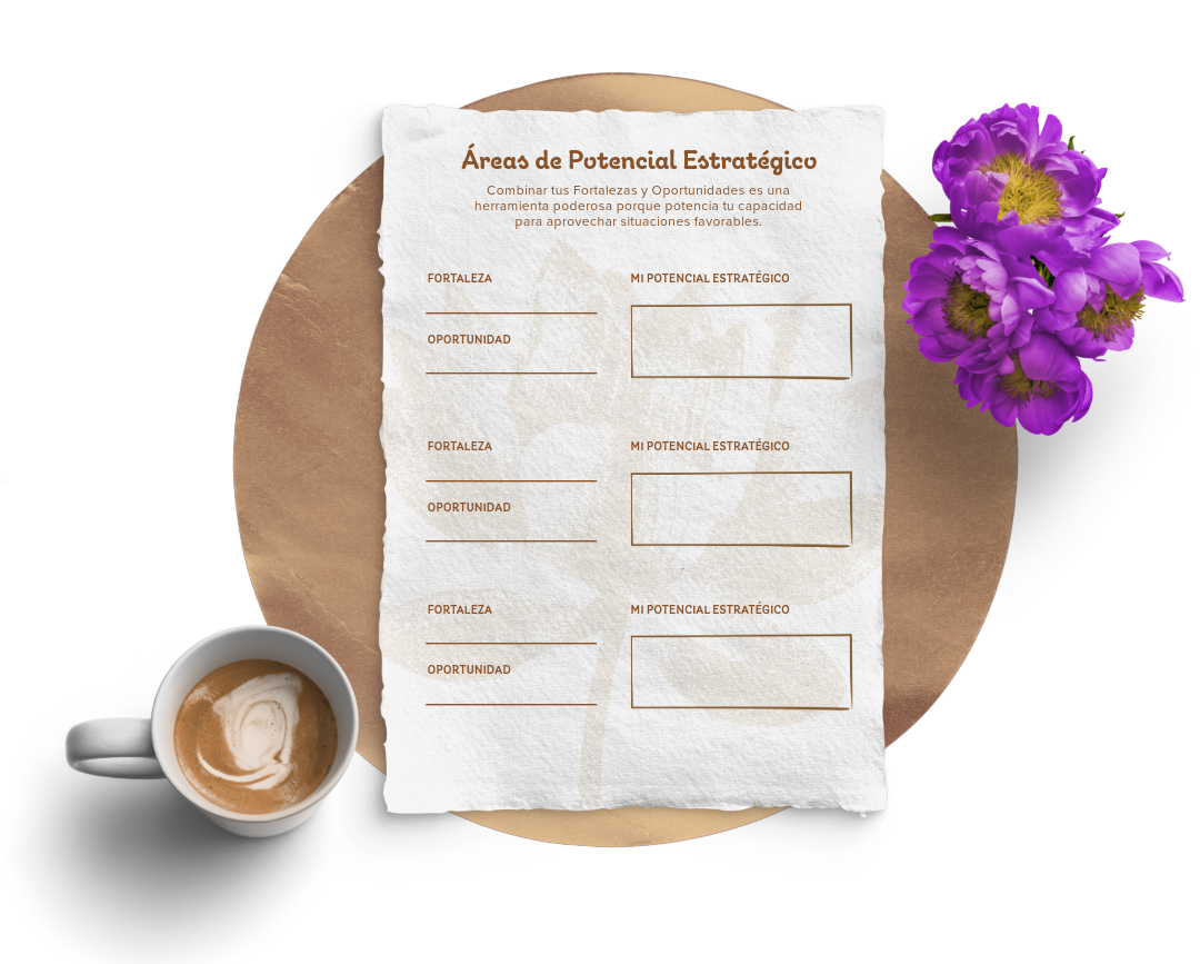Para ayudarte en este viaje, he diseñado la herramienta ‘Mis Áreas de Potencial Estratégico’, un método práctico y directo para conocerte mejor y aprovechar al máximo tus recursos internos.