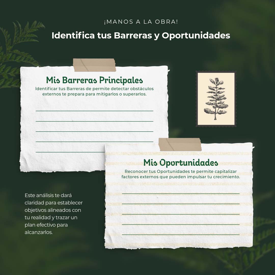 - Barreras: ¿Qué obstáculos podrías encontrar en tu camino?